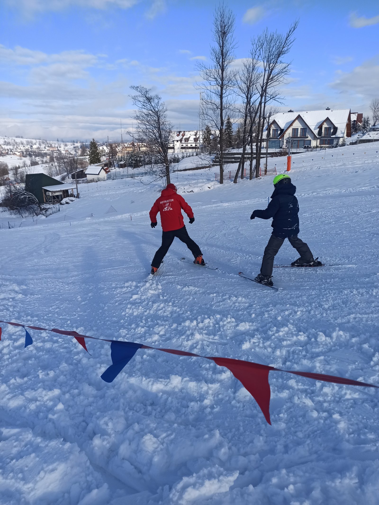 Każda lekcja trwa 50 minut i rozpoczyna się punktualnie, dlatego prosimy o przybycie kilka minut wcześniej. Miejscem zbiórki jest szyld Szkoły Narciarskiej Budzyńskich przy górnej stacji mini-wyciągu dla początkujących — to tam instruktor odbiera swoich kursantów i rozpoczyna zajęcia.
